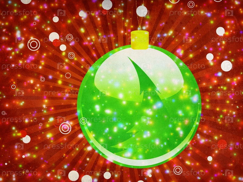 Зеленый рождественский шар на сверкающем фоне
