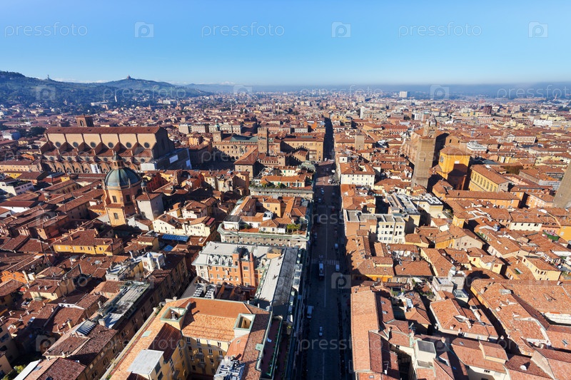 Вид с башни Азинелли на Страда Маджоре в Болонье