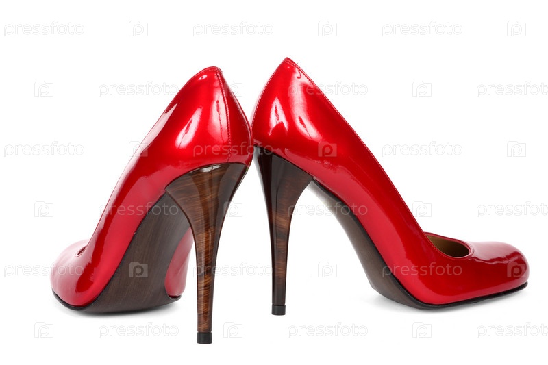 Красные женские туфли на высоком каблуке
