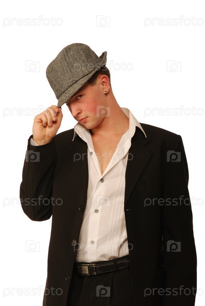 Молодой мужчина в фетровой шляпе на белом фоне