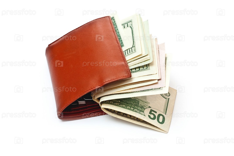 Доллары в коричневом кошельке