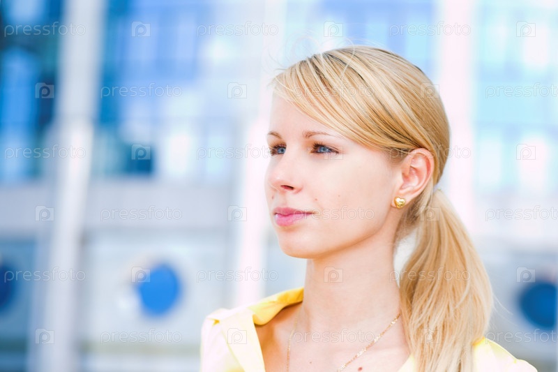 Бизнес-леди на фоне офисного здания