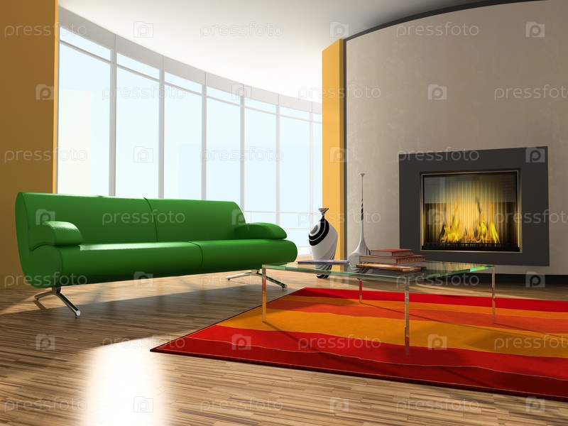 Интерьер комнаты с креслом и камином