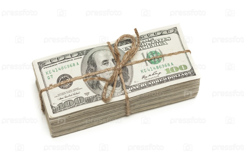 Пачка стодолларовых банкнот, перевязанная веревкой