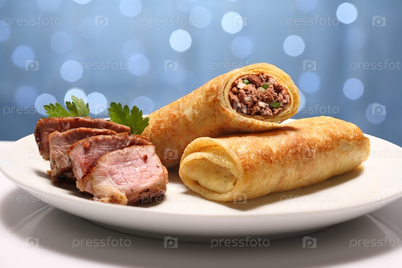 Блинчики с мясом на тарелке