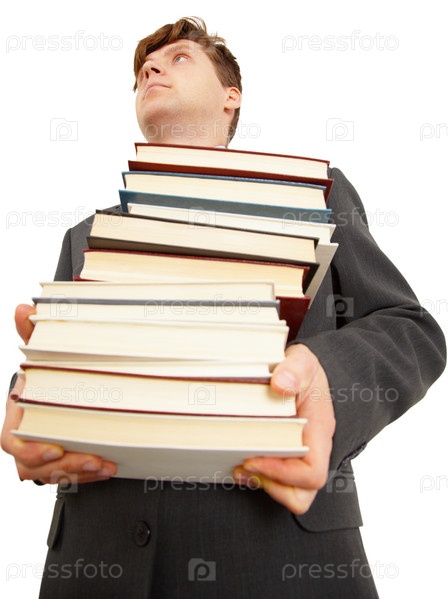 Мужчина со стопкой книг в руках