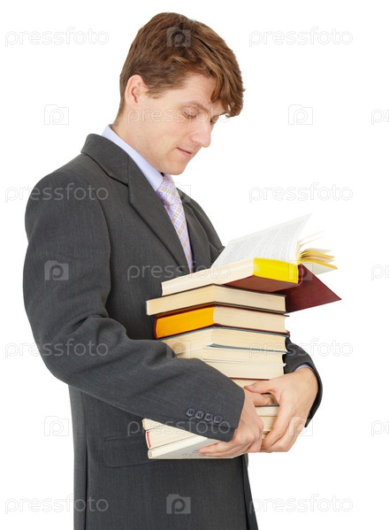 Мужчина со стопкой книг в руках