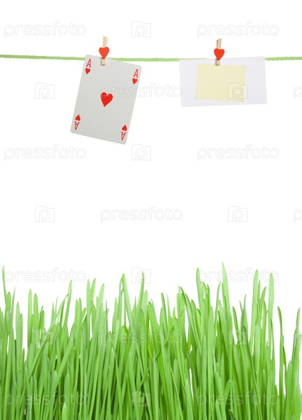 Игральная карта на веревке над травой