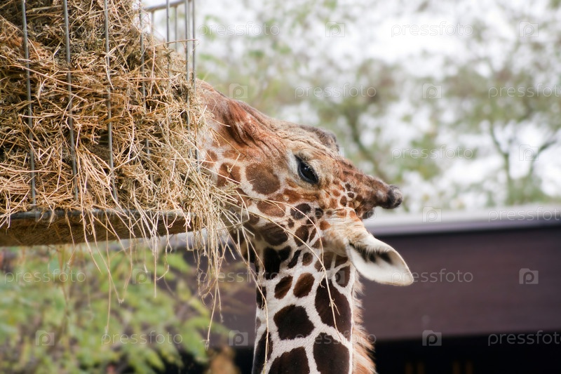 Жираф ест сено