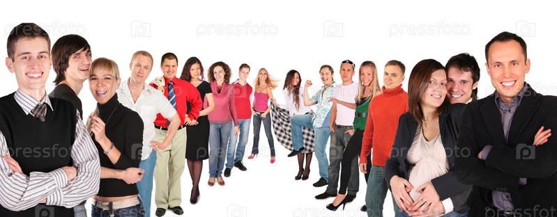 Большая группа людей на белом фоне