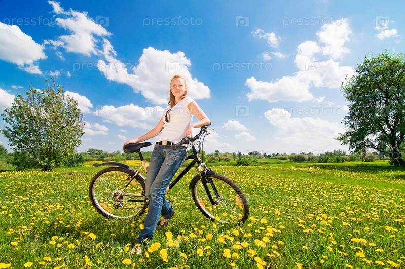Молодая женщина с велосипедом