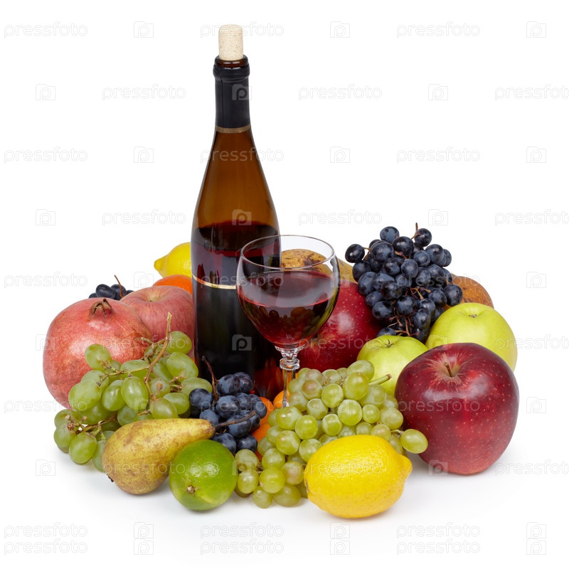 Натюрморт из различных фруктов и вина