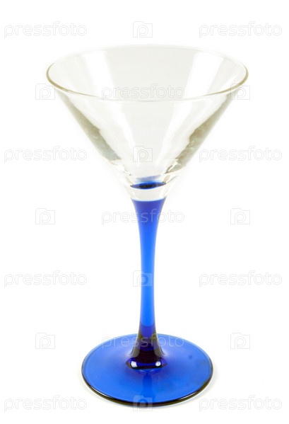 Бокал для мартини с синей ножкой на белом фоне