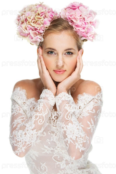 Портрет блондинки с гортензией в волосах