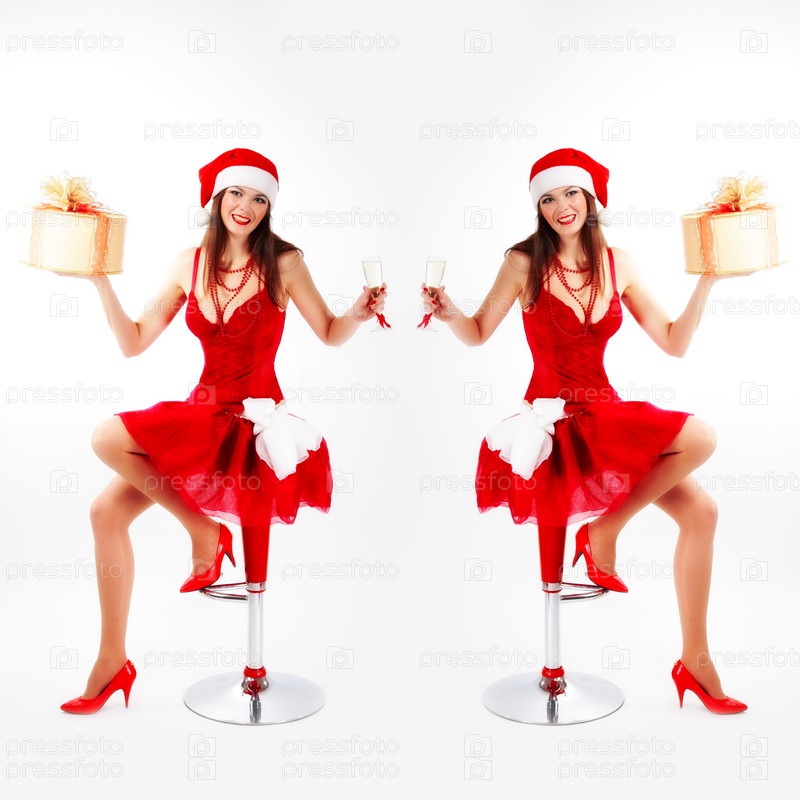 Молодые девушке в костюмах Санта-Клауса
