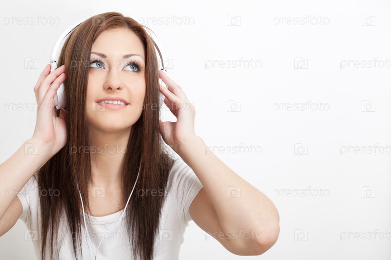 Улыбающаяся женщина слушает музыку