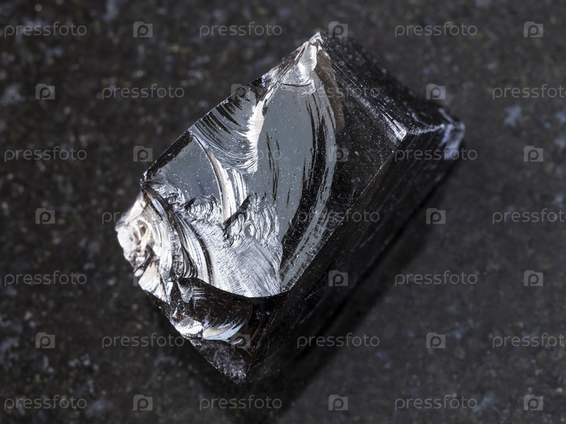 Кусок сырого обсидиана (вулканическое стекло) на темном