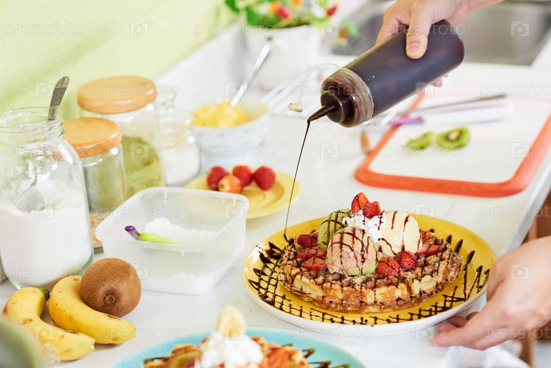 Добавление шоколадного сиропа