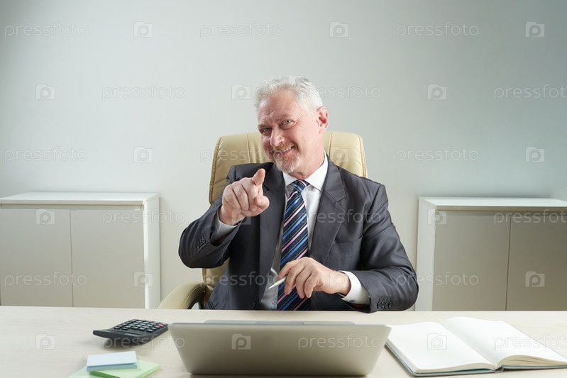 Красивый старший менеджер, указывая на камеру