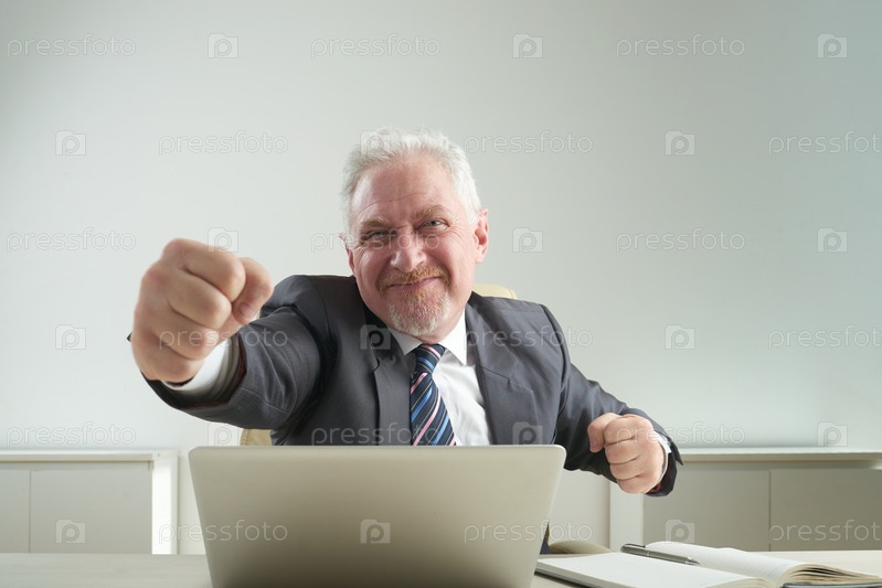 Веселый бизнесмен торжествует