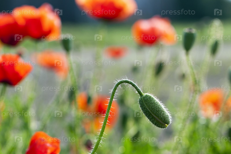 Цветущие красные маки