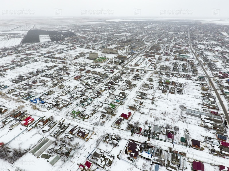 Зимний вид села с высоты птичьего полета
