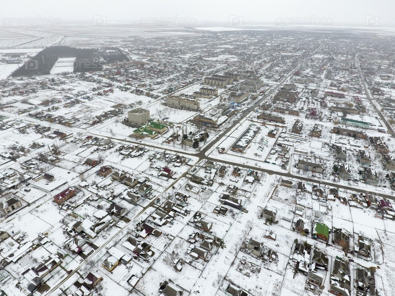 Зимний вид села с высоты птичьего полета