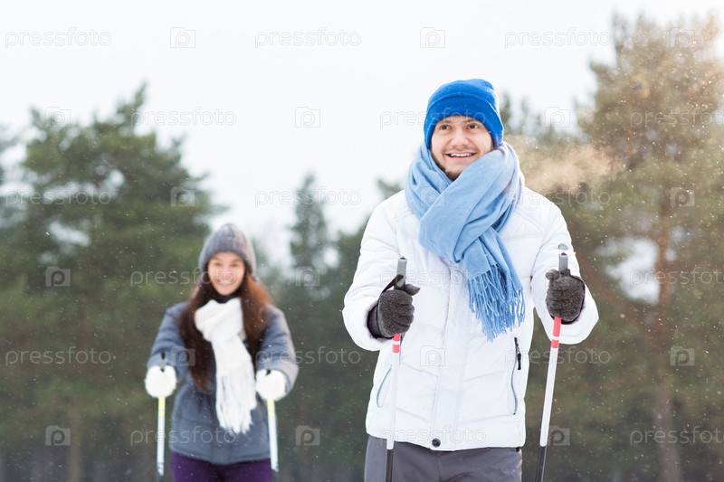 Лыжники в парке
