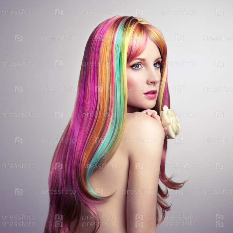 Девушка с красочными окрашенными волосами