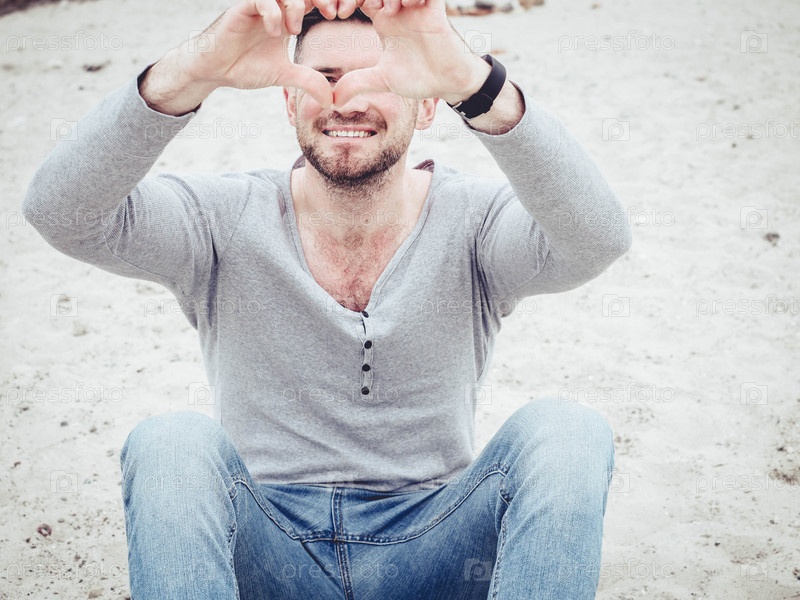 Стильный парень, показывая сердце руками