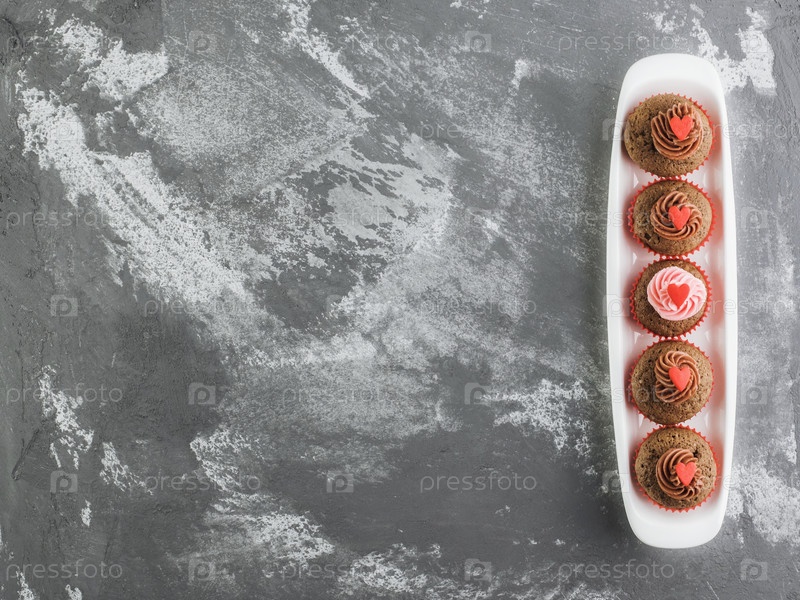 Свежие кексы, украшенные сливками и сердцами