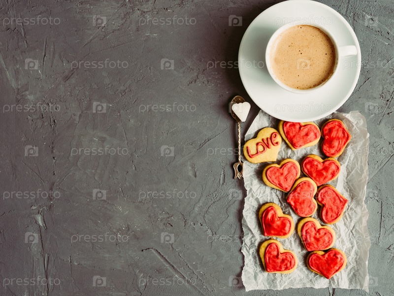 Крепкий и ароматный кофе со свежим печеньем в День святого Валентина
