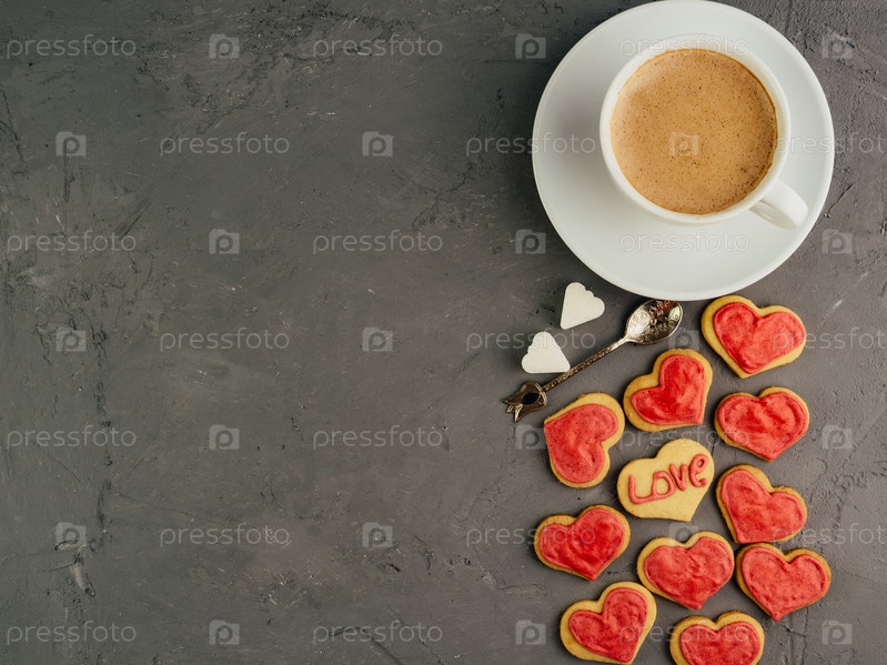 Крепкий и ароматный кофе со свежим печеньем в День святого Валентина
