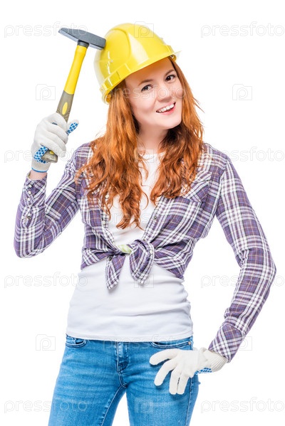 Женщина с молотком в желтом шлеме