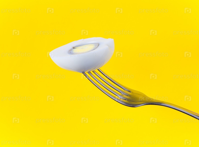 Половина куриного яйца на вилке