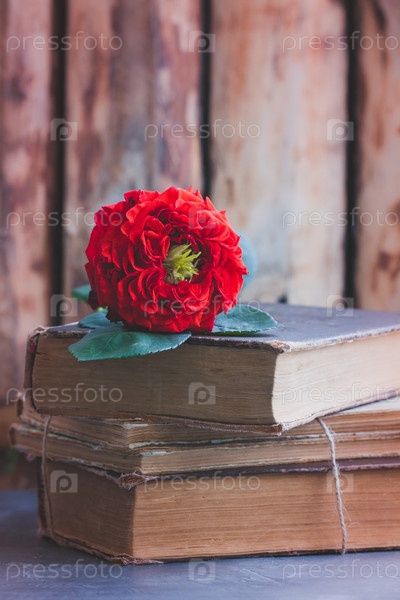 Красные садовые розы на книгах