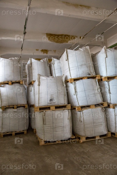 Сахар в мешках на складе