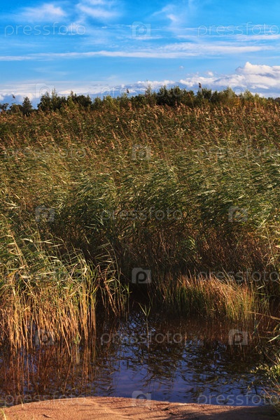 Тростник в солнечный день с голубым небом