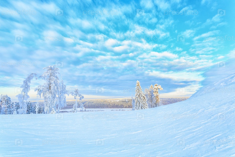 Заснеженные деревья на снежном склоне
