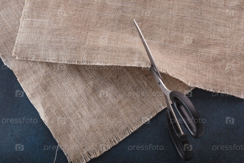 Ножницы портного режут льняную ткань