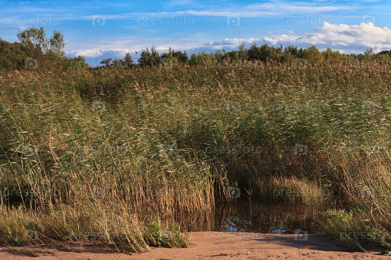 Тростник в солнечный день с голубым небом