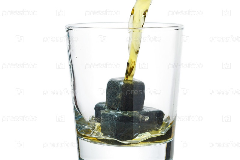 Виски наливают в стакан с камнями