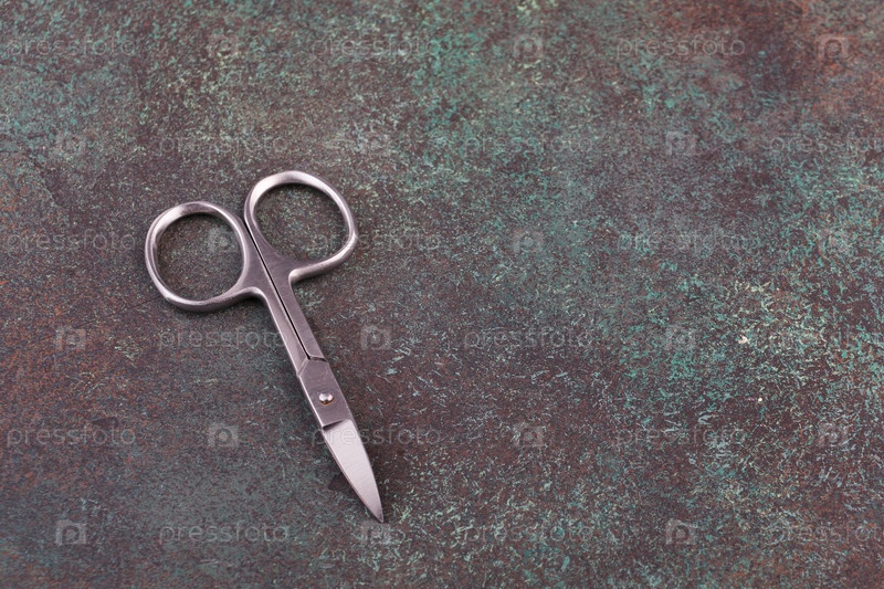 Маникюрные ножницы на текстурированной темном фоне