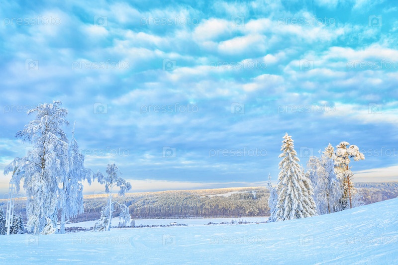 Заснеженные деревья на снежном склоне