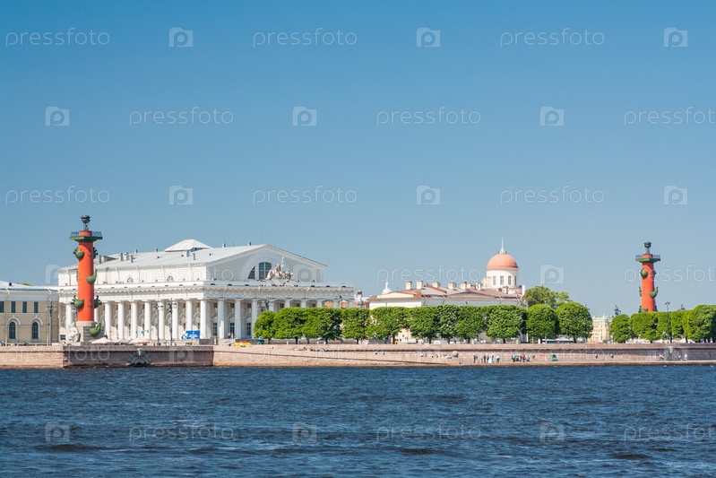 Ростральные колонны в солнечный день. Россия, Санкт-Петербург