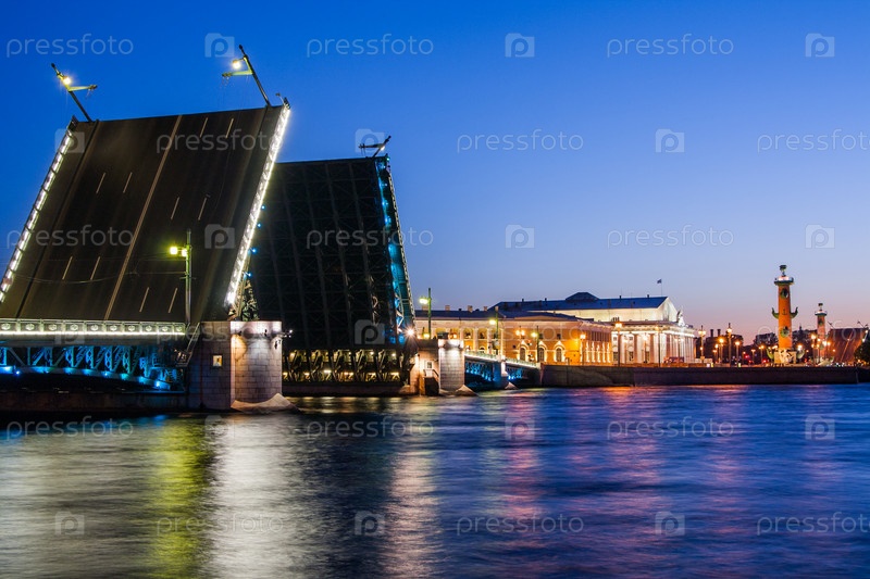 Разведенный Дворцовый мост во время белых ночей, Санкт-Петербург, Россия