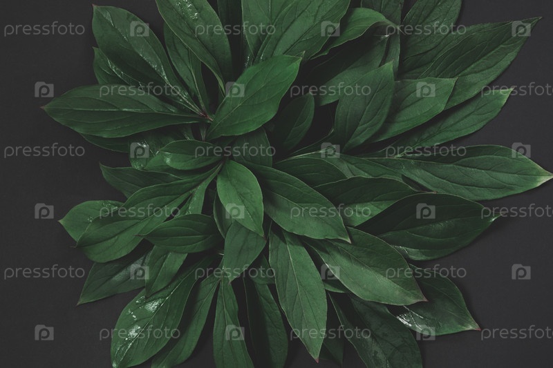 Креативный макет зеленых листьев на черном фоне