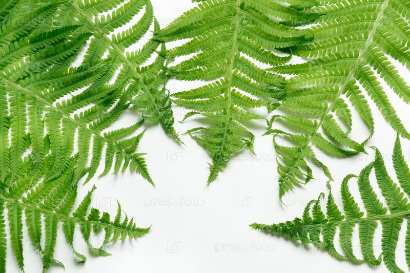Зеленые листья папоротника на белом фоне