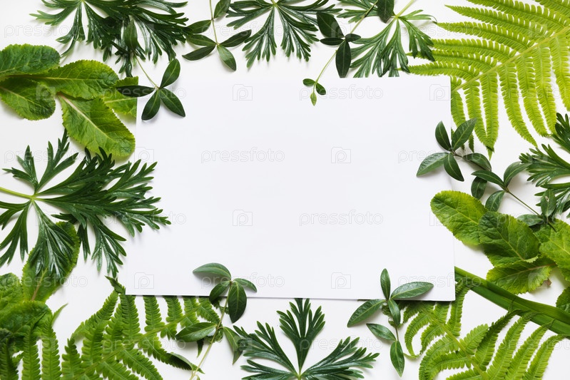 Зеленые листья на белом фоне