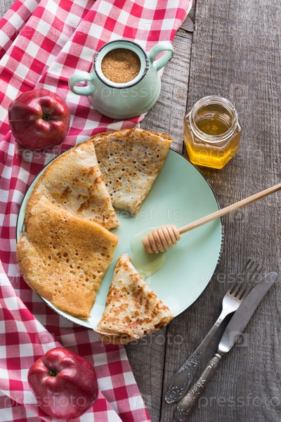 Традиционный русский завтрак с блинами и медом
